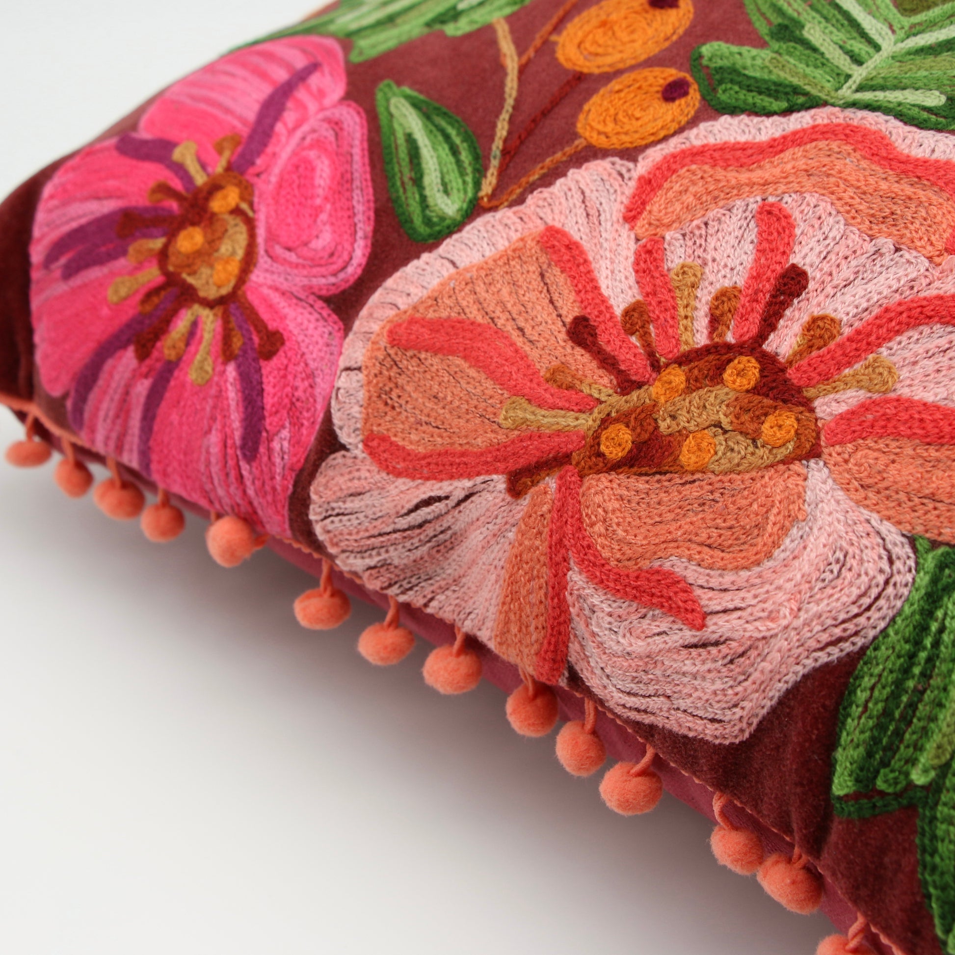 Plum Finest Blossom Canvas and Velvet Pillow 18X18