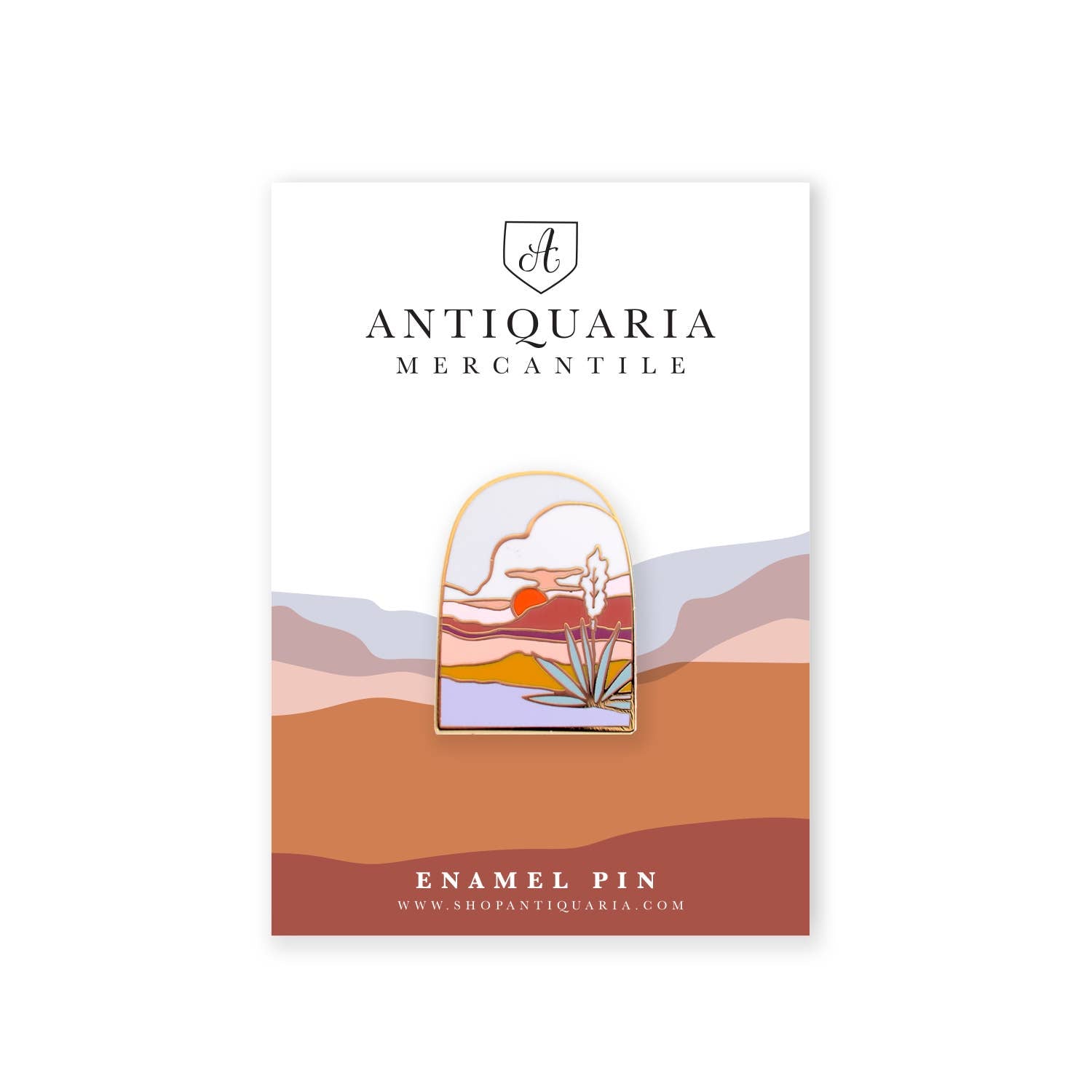 Inspired by golden-hour skies and desert stillness, this enamel pin captures an agave in full bloom against a glowing sunset. It’s a small tribute to the quiet drama of the Southwest—bold, patient, and unexpectedly elegant.