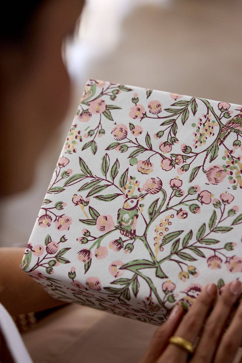 Printed by hand in small batches, these block-printed wrapping paper sheets celebrate the beauty of traditional craftsmanship. Each design is built impression by impression, with artisans carefully aligning every block to create a sense of rhythm and balance. The result is a pattern that feels both precise and human, with subtle variations that make every sheet its own.