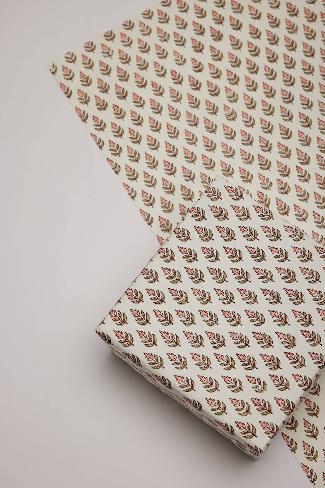 Block Printed Wrapping Paper Sheets - Buti Coral