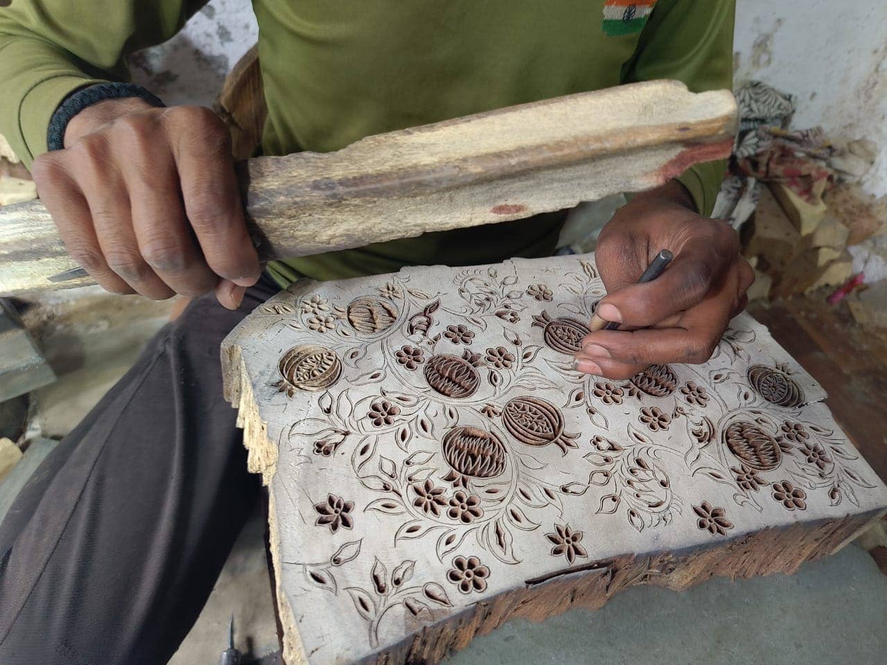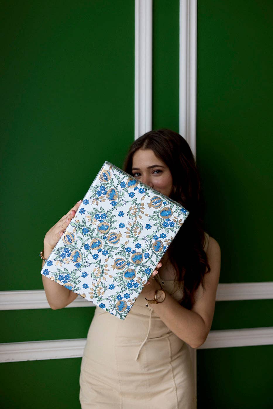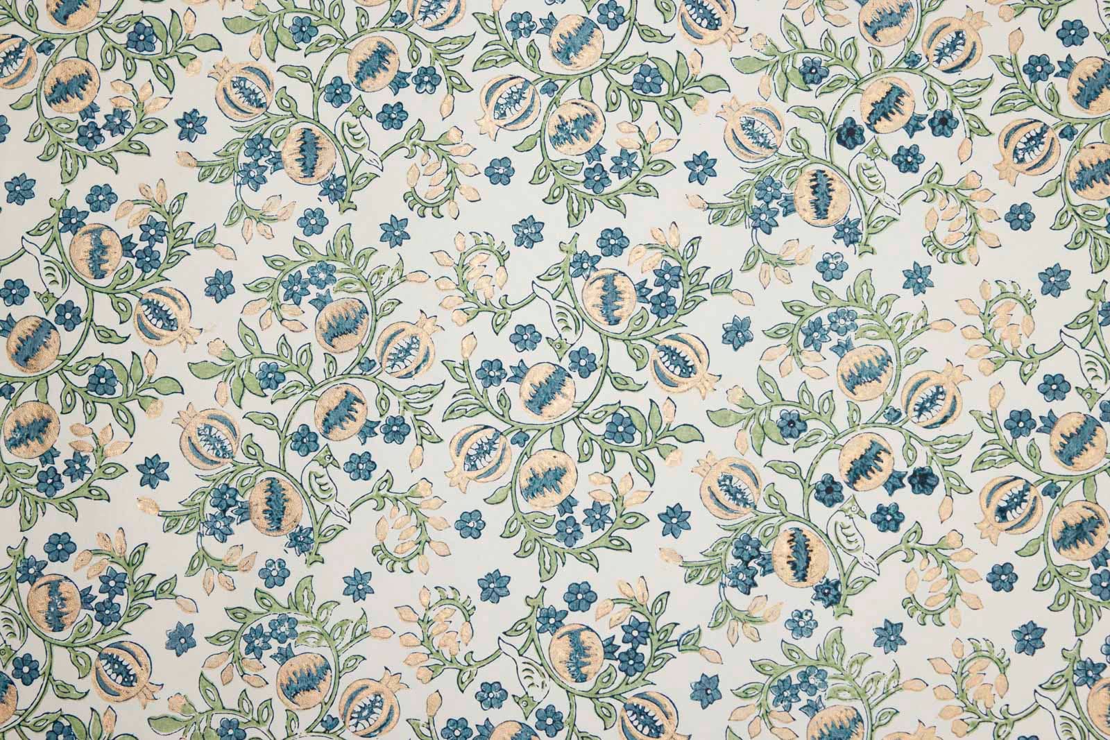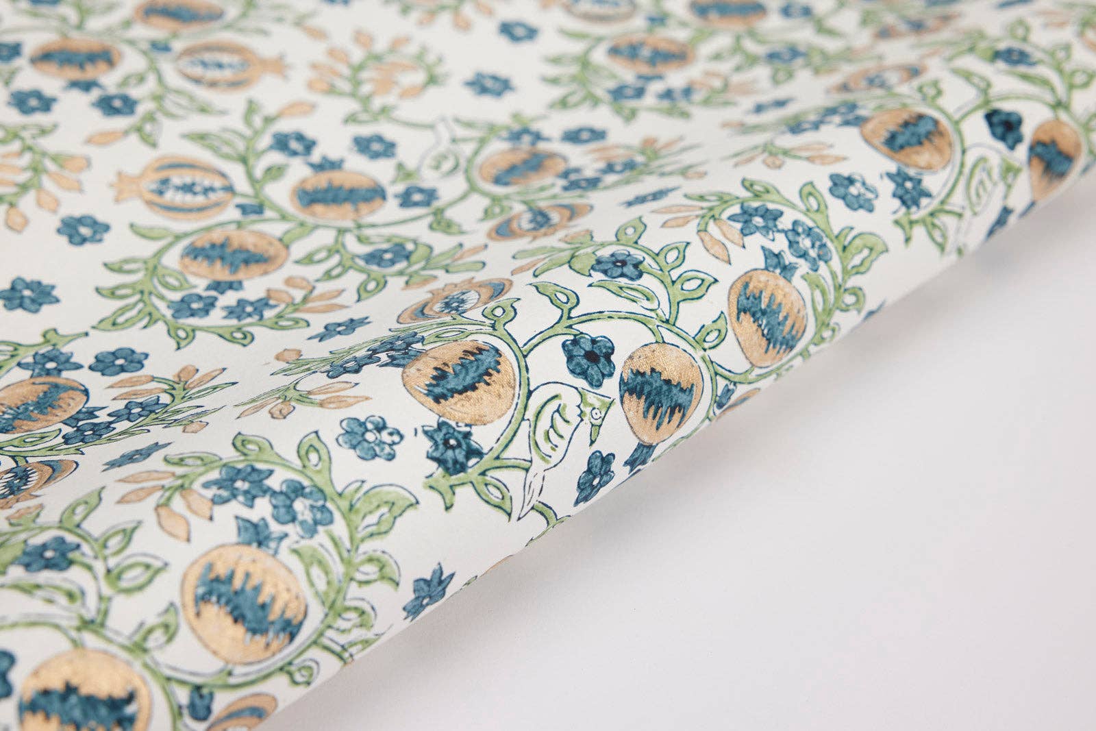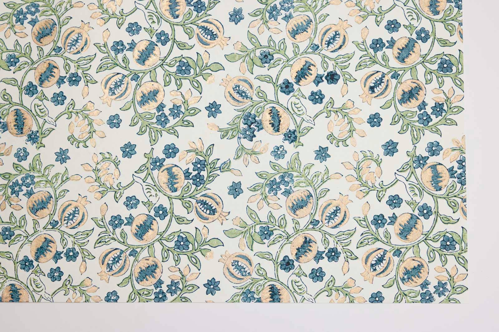 Block Printed Wrapping Paper Sheets - Pomegranate Indigo