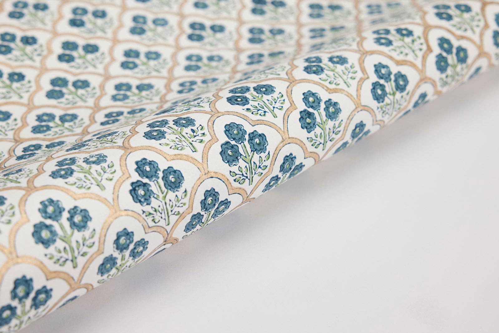Block Printed Wrapping Paper Sheets - Trellis Indigo