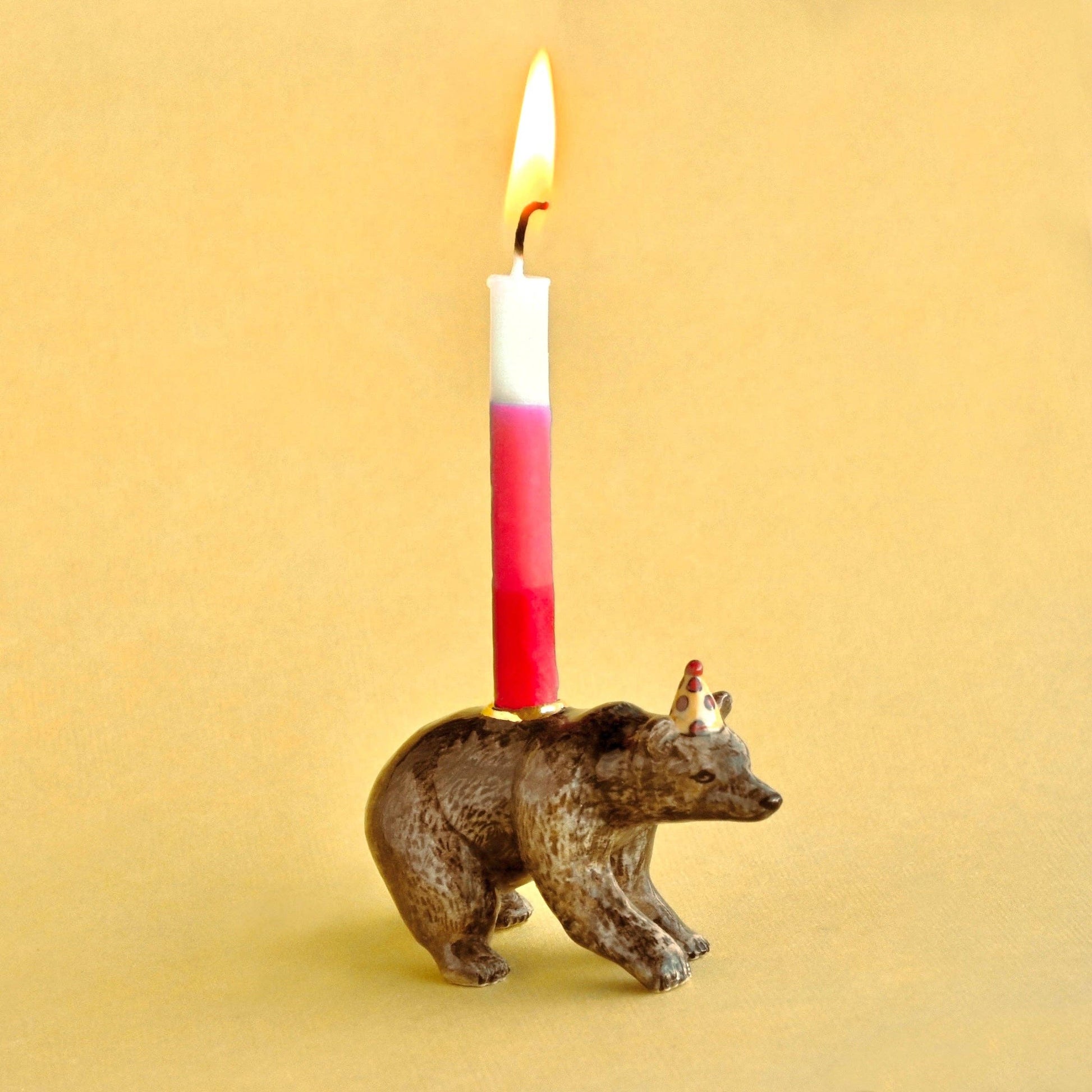 Invite the wilderness to your celebrations with the Brown Bear Cake Topper. Adorned with a cheerful polka-dot hat, it's perfect for adding a touch of the wild to kids' parties and adult soirees alike. Created from heirloom-quality porcelain and designed to last, these hand-painted masterpieces are unique gifts that will last for years to come. Crafted from fine porcelain and meticulously hand-painted in detail. Includes a beeswax candle and gift box.