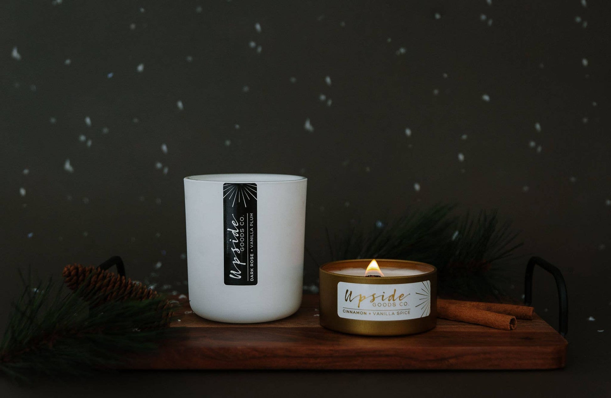 Bring the magic of the holidays into your home with our curated collection of three luxurious scents: Frasier Forest – Crisp evergreen and pine, like a winter woodland. Cranberry + Maple Fig – Tart cranberry and golden maple with ripe fig. Amber + Spiced Honey – Warm honey, cinnamon, and amber for fireside comfort. Coconut Soy, Wooden Wick candles. Each candle lasts around 45 hours and is poured in reusable vessels for you to repurpose when they are done! Also available in a 12oz Size