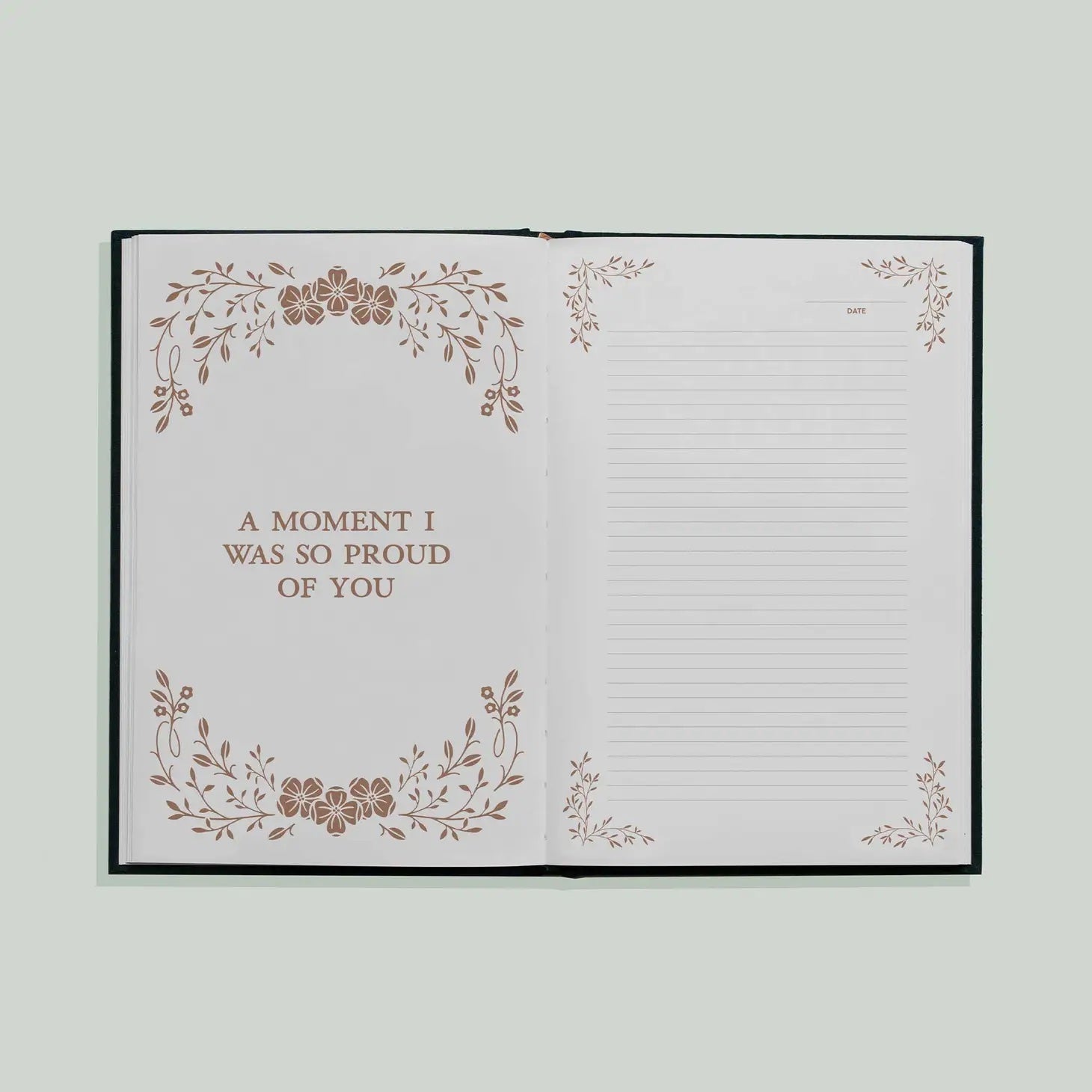 A Gratitude Journal for Parents to preserve memories and special moments. Grateful for You is a memory book for parents that highlights the everyday moments with your baby, rather than just the milestones. This journaling book is meant to be available in all of life’s in-betweens - write down a sweet story you never want to forget, something funny your baby did, or even the struggles you’ve faced as a parent. There’s no wrong way to use the journal, you can journal in it everyday or simply jot down the sweet moments whenever you need.
