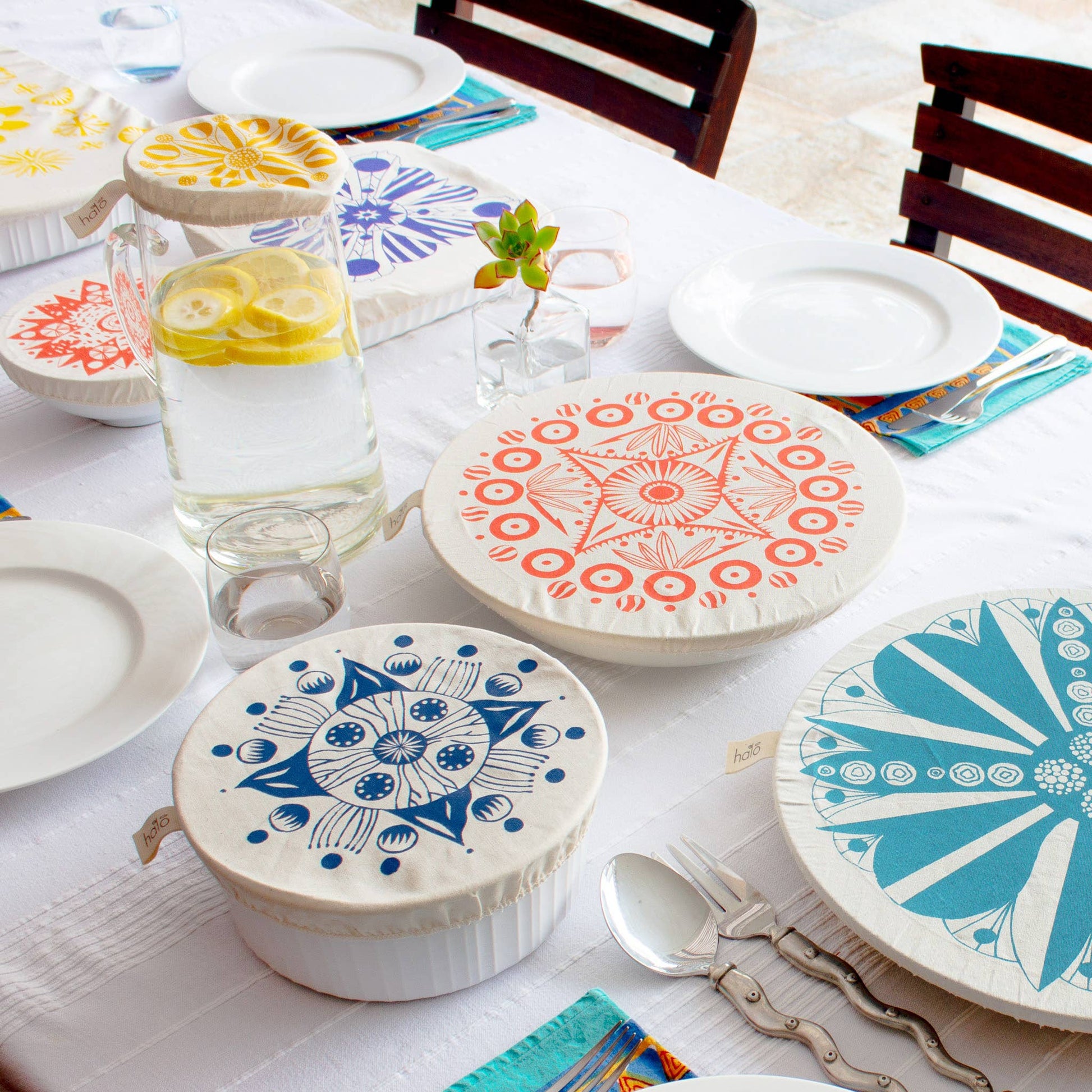 From midweek leftovers to long, unhurried dinners with friends, these organic cotton covers are designed to move with the pace of your kitchen. The medium size is the one you’ll reach for daily — stretching over salads, bowls of dough, and half-finished dishes that return to the table more than once. When it’s time to gather, the large and extra-large become indispensable, comfortably covering generous serving bowls and platters prepared for sharing.