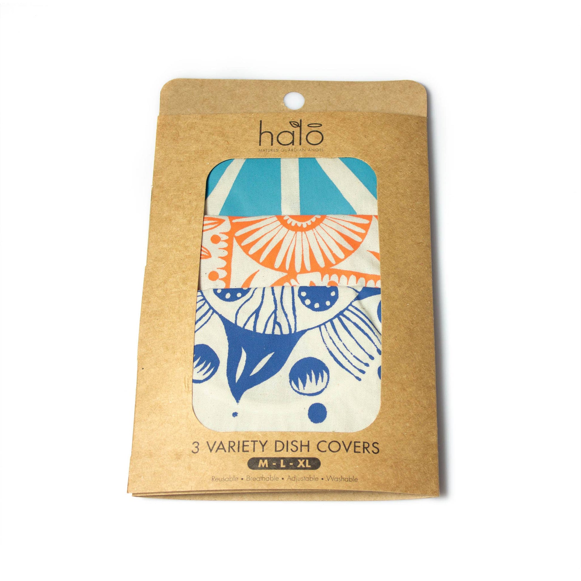 Each cover adapts easily to varying shapes and sizes, fitting snugly over round dishes up to its maximum diameter. The medium in Lapis stretches to 9 inches, the large in Blood Orange to 12 inches, and the extra-large in Ocean to 13 inches. Whether resting in the refrigerator, set out on the table, or tucked carefully into the car for transport, they stay secure while allowing food to breathe.
