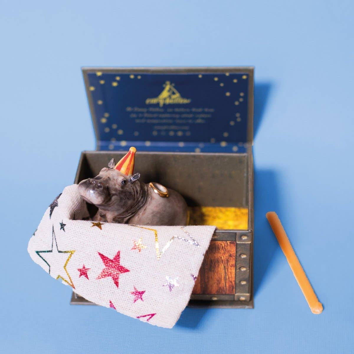Do you want a hippopotamus for Christmas? The enchanting Hippo Cake Topper brings the whimsy of the beloved holiday song to your festive table. Exquisitely detailed and brimming with charm, this delightful hippo is adorned with festive accents, capturing the joy and nostalgia of the season. Created from heirloom-quality porcelain and designed to last, these hand-painted masterpieces are unique gifts that will last for years to come. Crafted from fine porcelain and meticulously hand-painted in detail. Includes a beeswax candle and gift box.