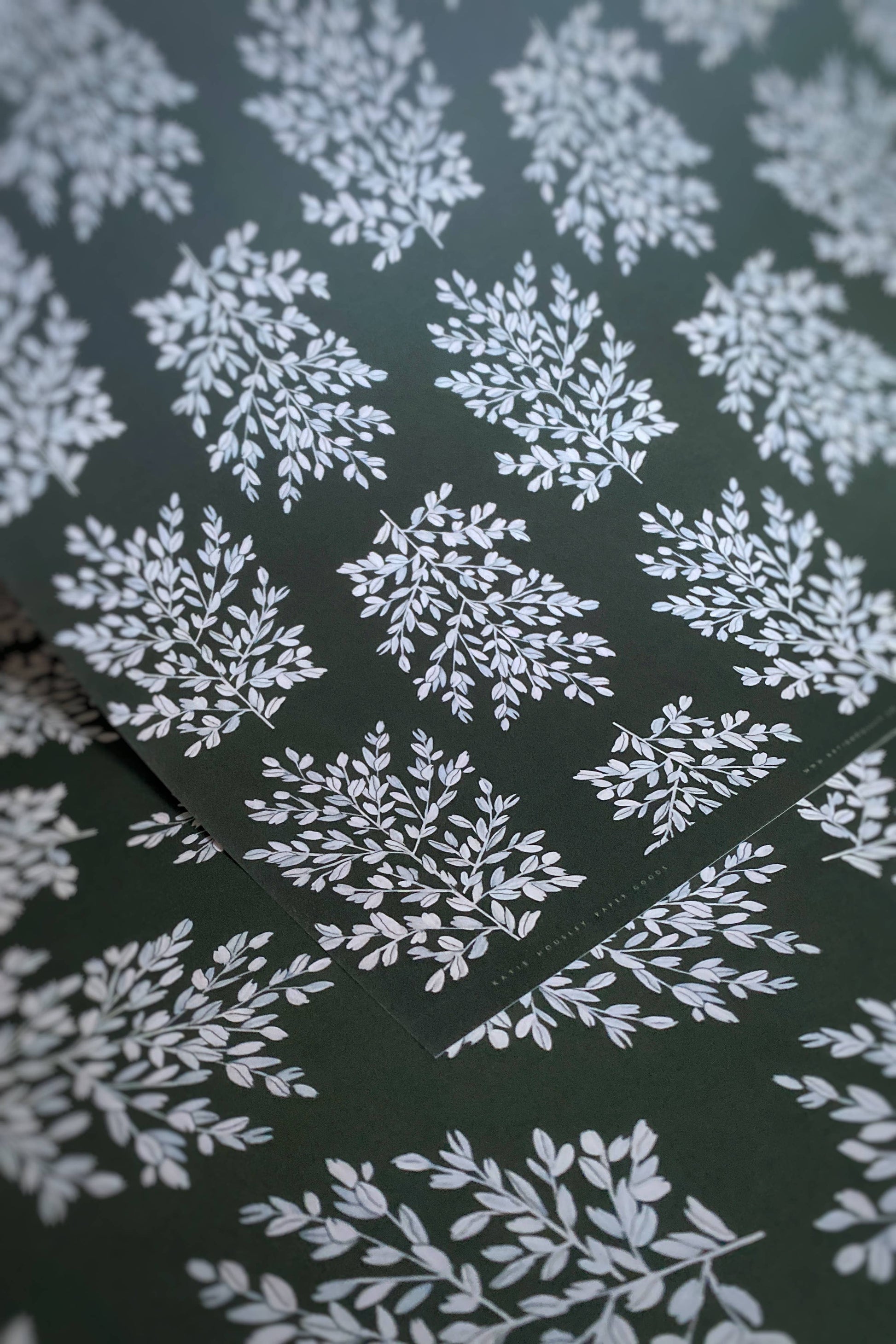 Luxury botanical wrapping paper sheet. Premium 120gsm, FSC certified GF Smith stock. Matt Finish. Sheet Size: 20" x 27.5"