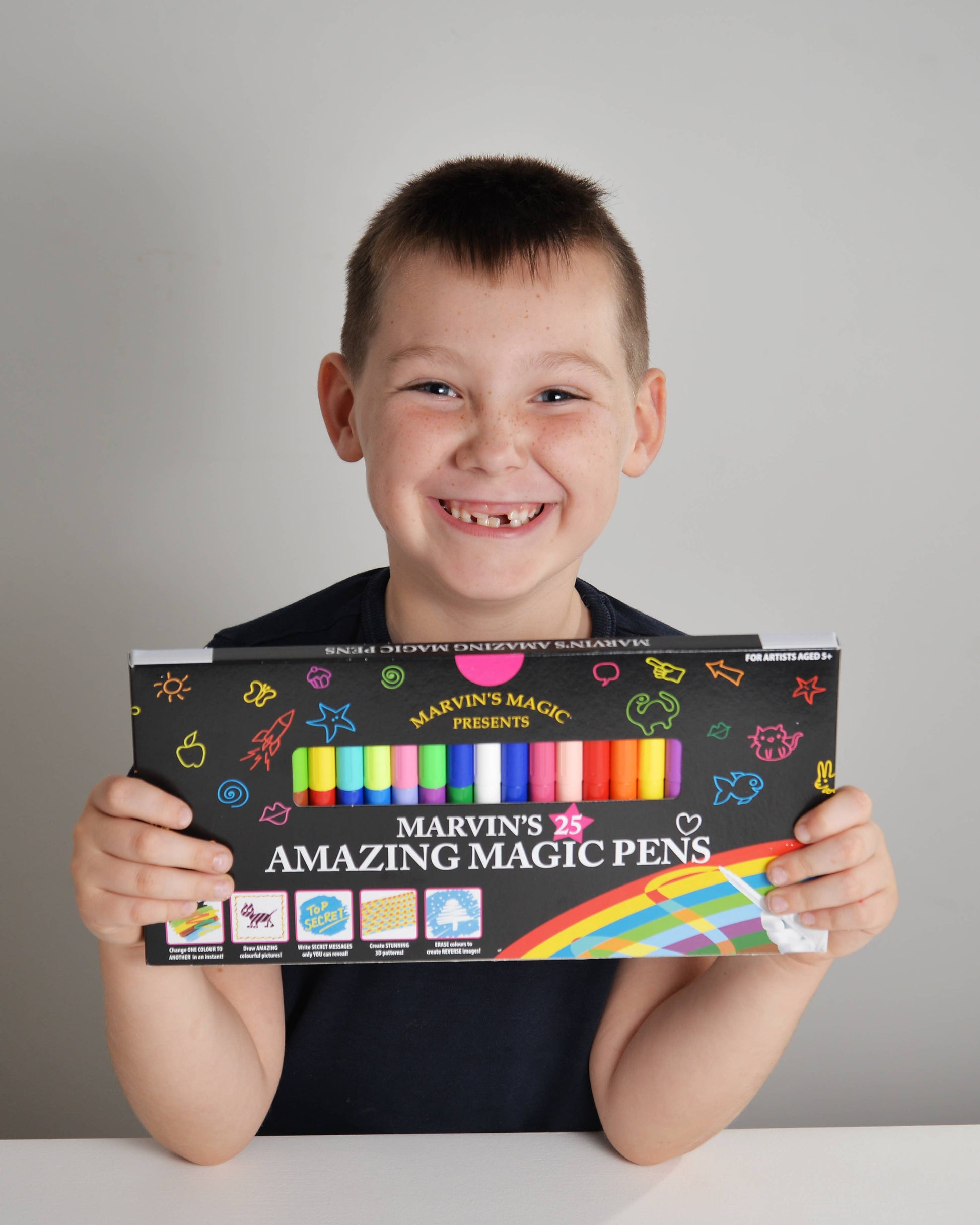 A high quality collection of amazing magic pens. Includes 25 color changing pens, and invisible pens to create magical techniques, patterns and pictures. Write secret messages, create stunning 3D lettering and make your art vanish, all with no mess and no fuss. Age 5+