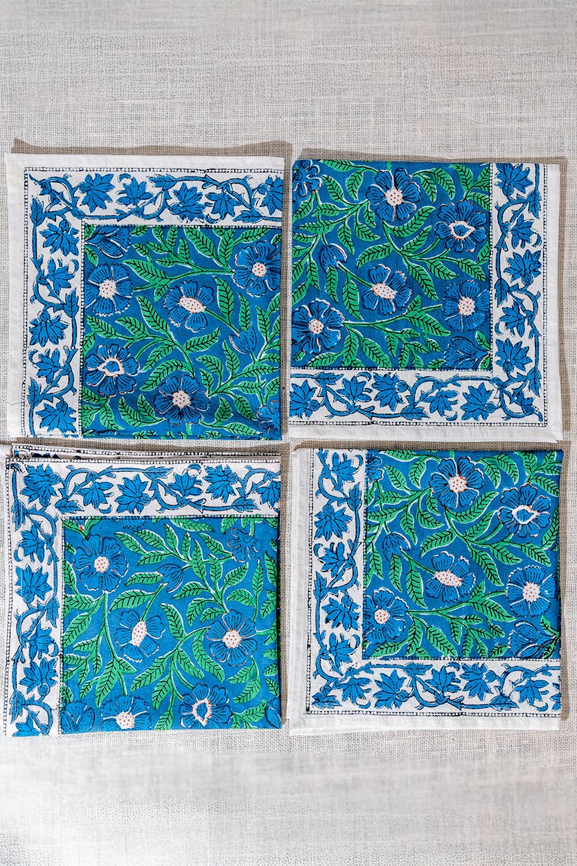 Hand block printed in Rajasthan, India, these 100% cotton napkins reflect the care and precision of traditional craftsmanship. Each design is pressed using hand-carved wooden blocks, with slight natural variations that make every piece uniquely beautiful.