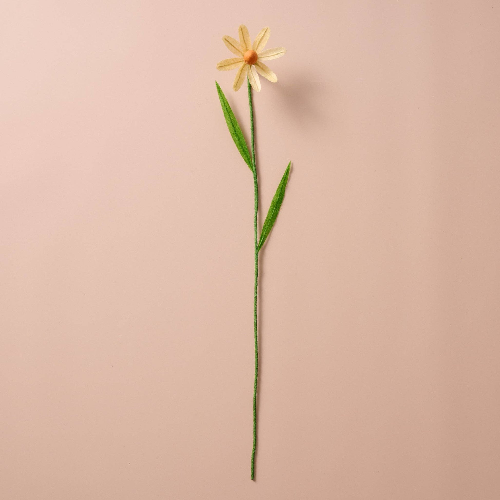 Transform any room into a garden with these beautiful cone flowers. Each bloom is crafted from silk paper, featuring soft cream petals and a bold orange center that adds warmth and contrast. A sturdy cotton-wrapped wire stem and two lush green leaves give each flower a natural, sculptural feel.