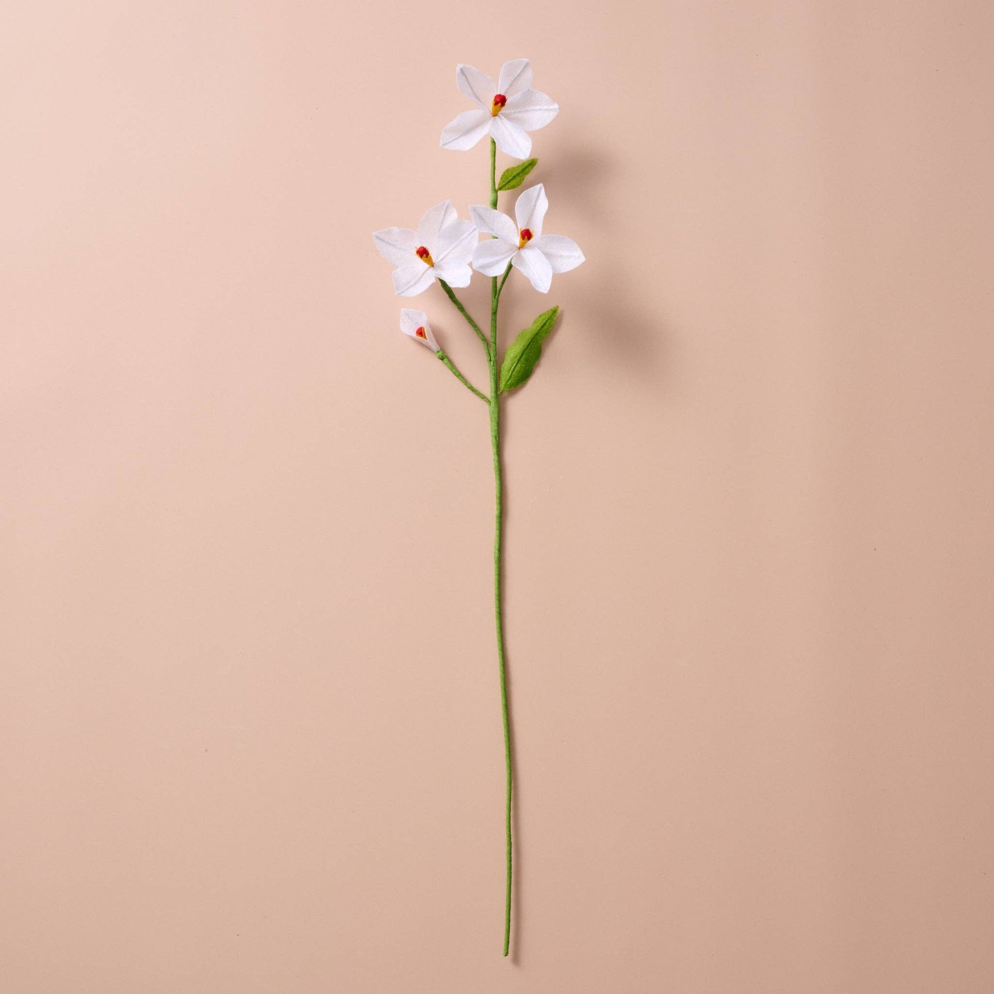 Add a fresh, natural touch to any space with these beautiful silk paperwhite flowers. Each jute-wrapped wire stem features three delicate paperwhite blooms, one unopened bud, and a single leaf, creating a thoughtfully balanced, lifelike look. The soft white petals are accented with red and yellow centers for a classic, timeless feel.