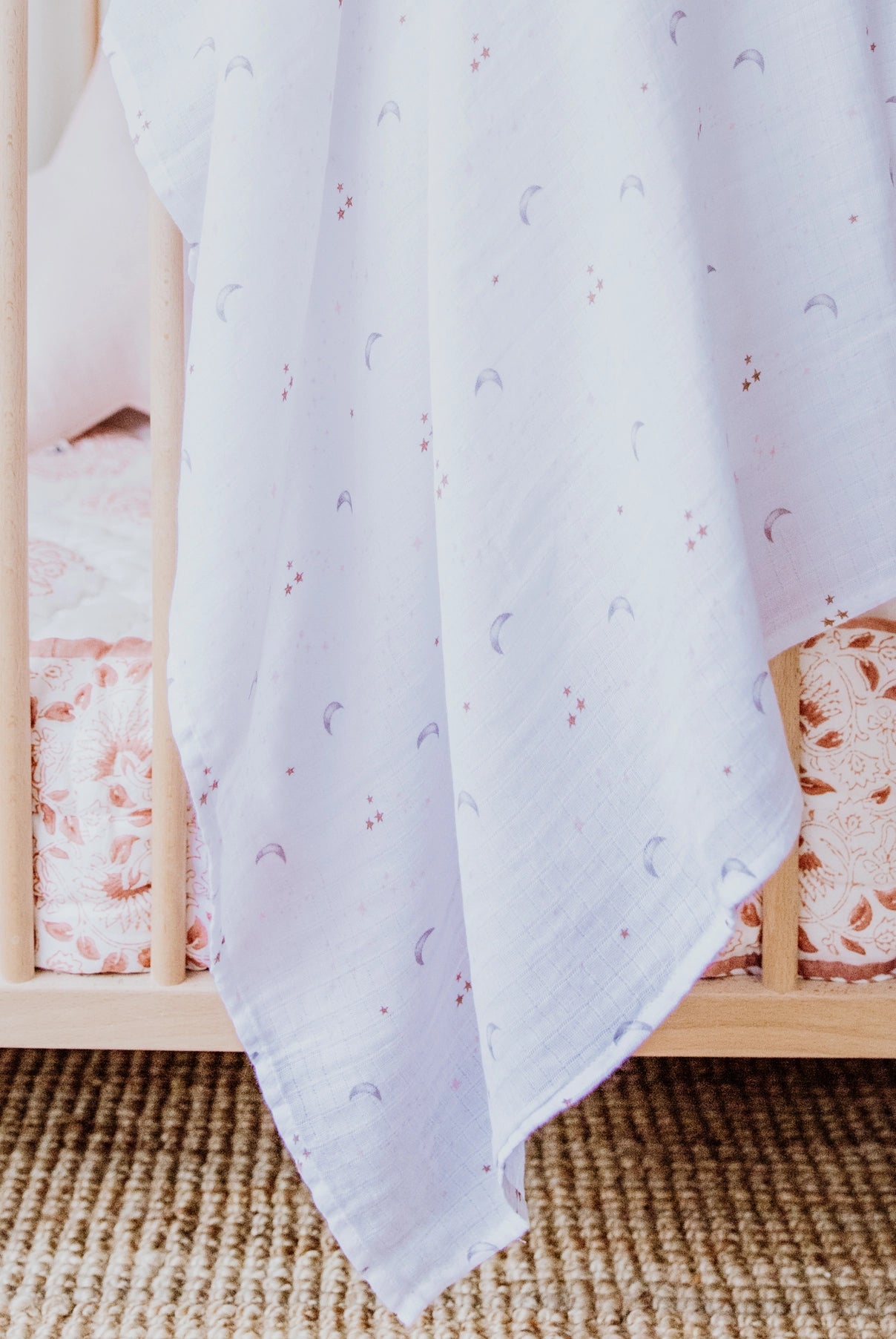 Pre-washed, luxuriously soft organic cotton muslin swaddle that gets softer after every wash. Made from gots certified cotton threads. Lightweight and breathable - gentle on baby's delicate skin. Size: 47” x 47” Machine wash warm; tumble dry low (do not iron or dry clean.)