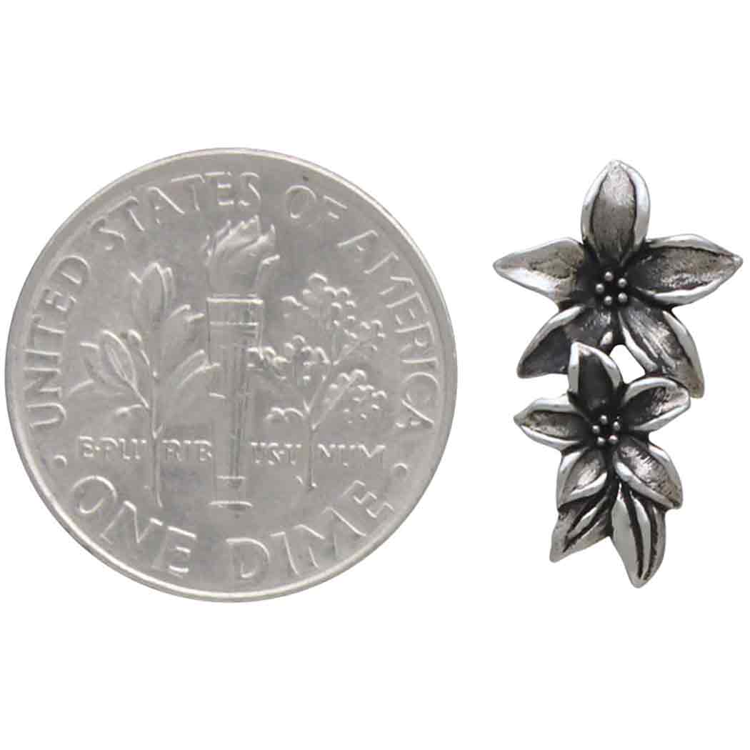 Sterling Silver Flower and Leaves Post Earrings 16x10mm