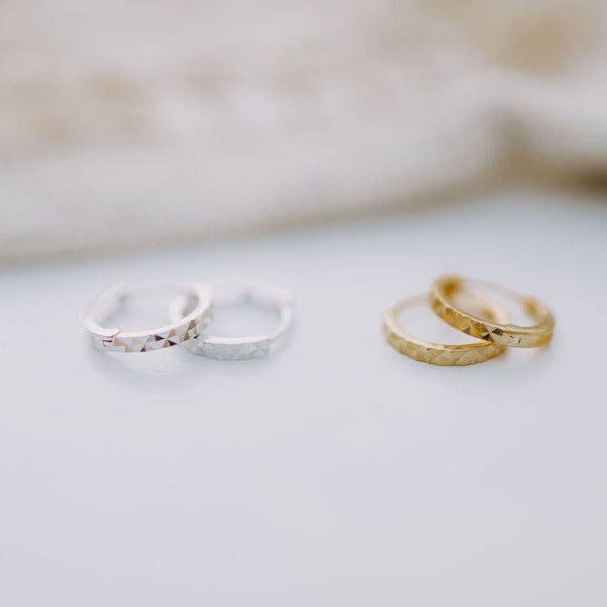These Sydney Hammered Hoops are the perfect earring that goes with everything! They are available in both sterling silver and gold vermeil and are hypoallergenic, tarnish and wear resistant, and perfect for sensitive ears. They measure a dainty 10mm and are perfect for a first piercing or in an earring stack.